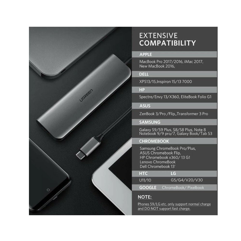 Адаптер UGreen CM136 (80132) USB C to 3×USB 3.0+HDMI+3.5mm (2-in-1)+PD Adapter серый