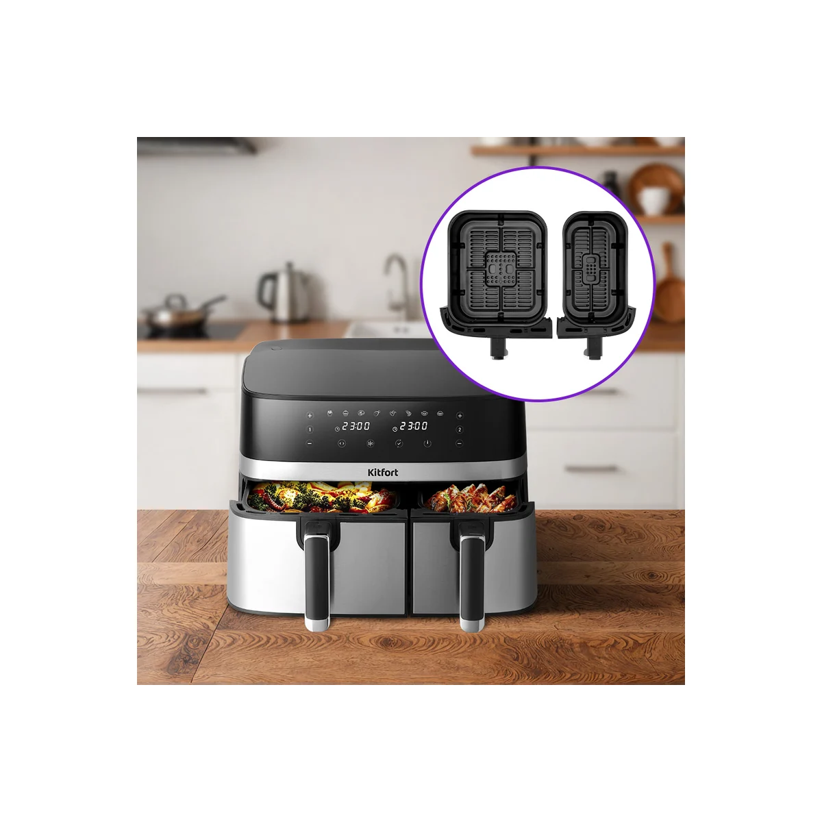 Аэрогриль KitFort KT-2261 черный и серебристый