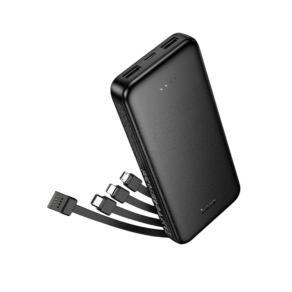 Внешний аккумулятор Hoco J163, 10000mAh, встроенный кабель Micro/Apple/Type-c/USB, черный