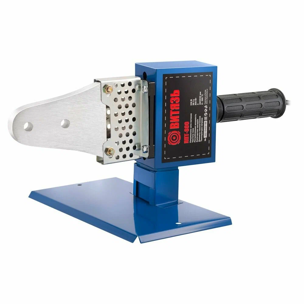 Паяльник для сварки пластиковых труб Витязь ППТ-800 прост и удобен в эксплуатации. Быстро нагревается, имеет регулировку температурного диапазона. Паяльник укомплектован 3 насадками для возможности сварки труб разного диаметра. Расплавленные заготовки легко снимаются с нагревательного элемента. На нижней части паяльника имеется разъем для подставки.
