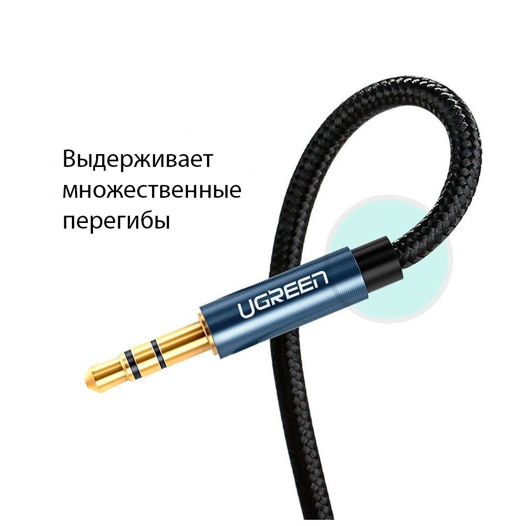 Аудиокабель UGREEN AV112 (10688) 3.5mm Male to 3.5mm Male Cable Gold Plated Metal Case with Braid 3m Blue