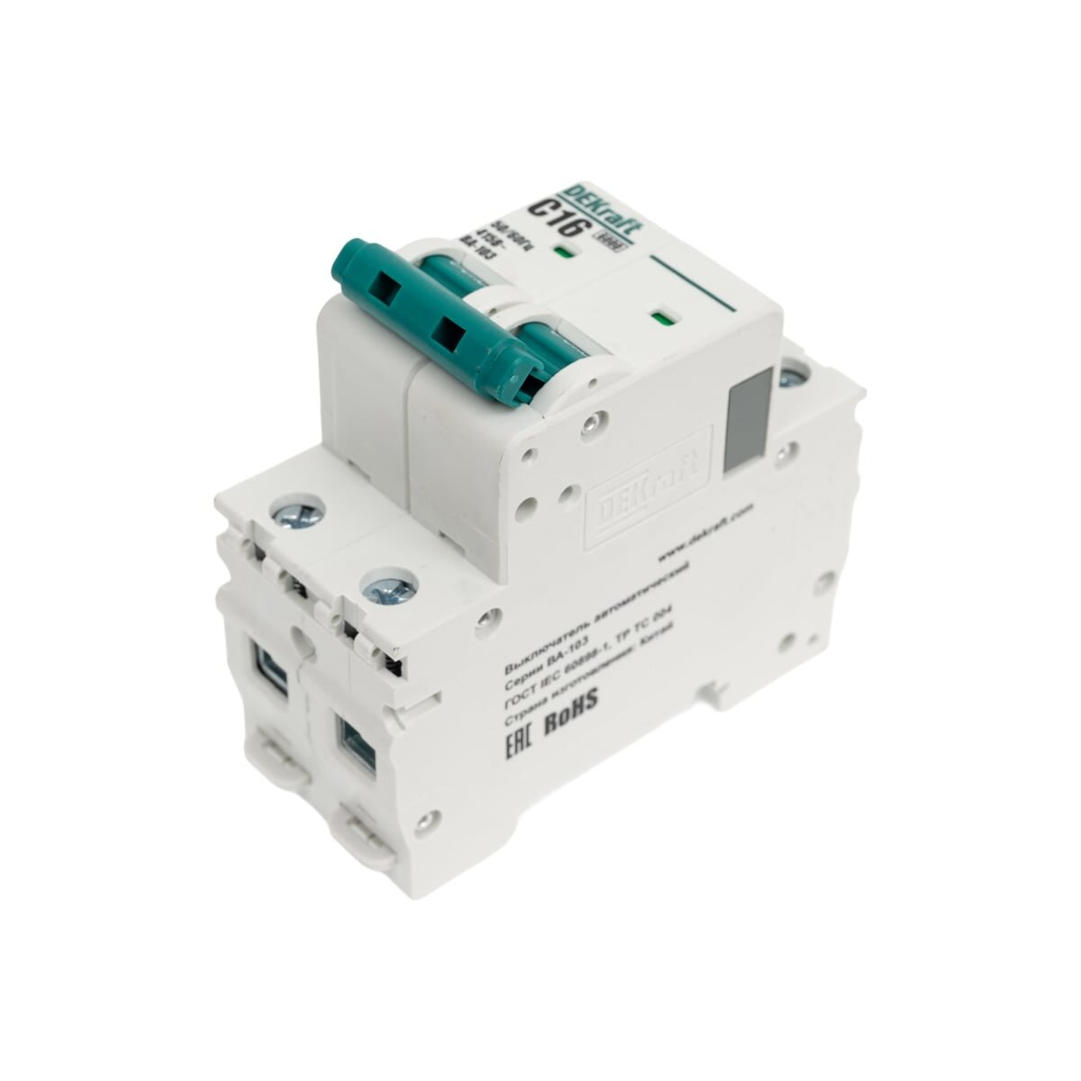 Автоматический выключатель серии ВА-101 Dekraft; 2P; номинальный ток 16 А; характеристика С; отключающая способность 4,5 кА. 5 монолитных заклепок повышают прочность корпуса аппарата. Сплошная лицевая панель обеспечивает безопасность эксплуатации аппарата. Боковые каналы охлаждения повышают стабильность работы при высоких температурах окружающей среды. Есть возможность установки дополнительных аксессуаров с левой стороны устройства. Аппарат на 100% совместим с корпусами Dekraft и Systeme Electric.