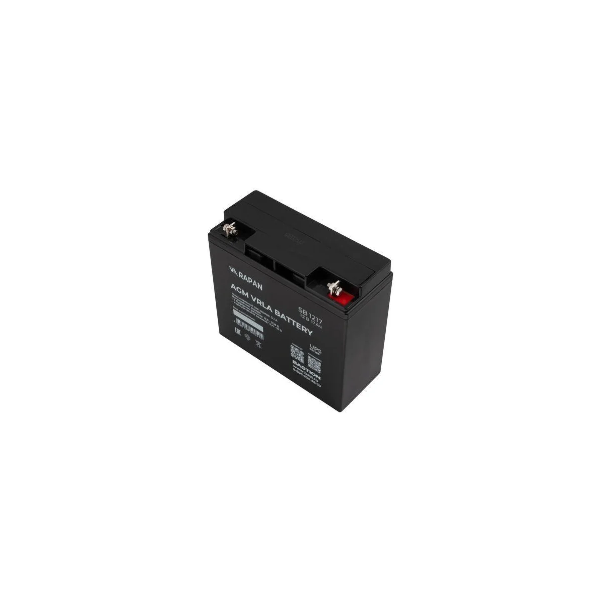 Аккумулятор герметичный свинцово-кислотный необслуживаемый RAPAN SB 1217 c пониженным внутренним сопротивлением производится по технологии AGM (Absorbent Glass Mat) с системой рекомбинации газов VLRA и предназначен для использования в составе системы резервного питания.