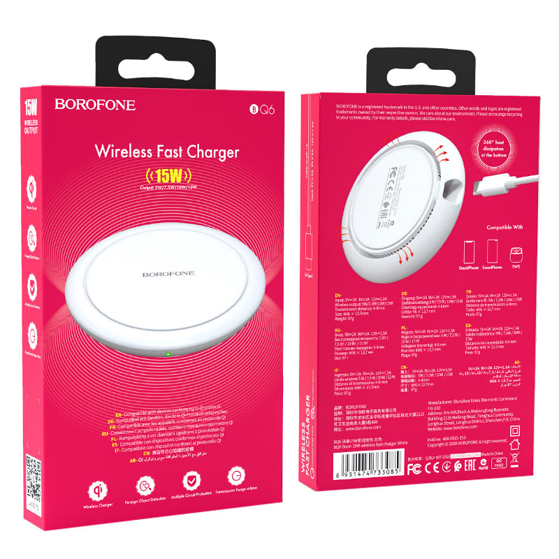 Беспроводная зарядка Borofone BQ6 Boon 15W wireless fast charger, white