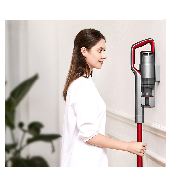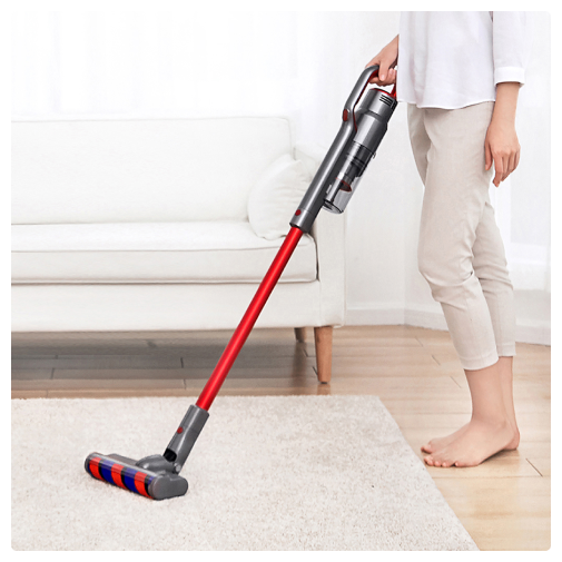 Двигатель вертикального пылесоса Jimmy JV65 создает сильный поток воздуха, под воздействием которого всасываемые частицы пыли отделяются от воздуха. Номинальная мощность пылесоса составляет 500 Вт, а эффективная мощность всасывания достигает 145 AW. Аккумулятор может управлять пылесосом в течение 45 мин в обычном режиме, и этого времени достаточно, чтобы очистить большой дом площадью до 350 кв. м. без дополнительной подзарядки. В комплекте доступны две турбощетки для пола. Комбинированная щетка состоит из мягких и жестких волокон и отлично подойдет для ковровых покрытий. Мягкая турбощетка подходит для очистки твердых покрытий и полировки. Держатель прикручивается к стене и удерживает пылесос в вертикальном положении.