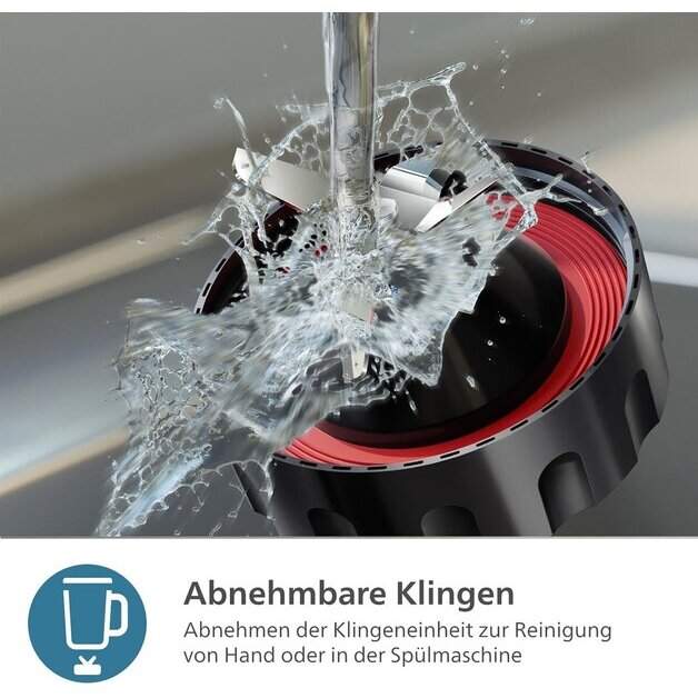 4 лезвия, крышка с отверстием для заправки, съемные части можно мыть в посудомоечной машине