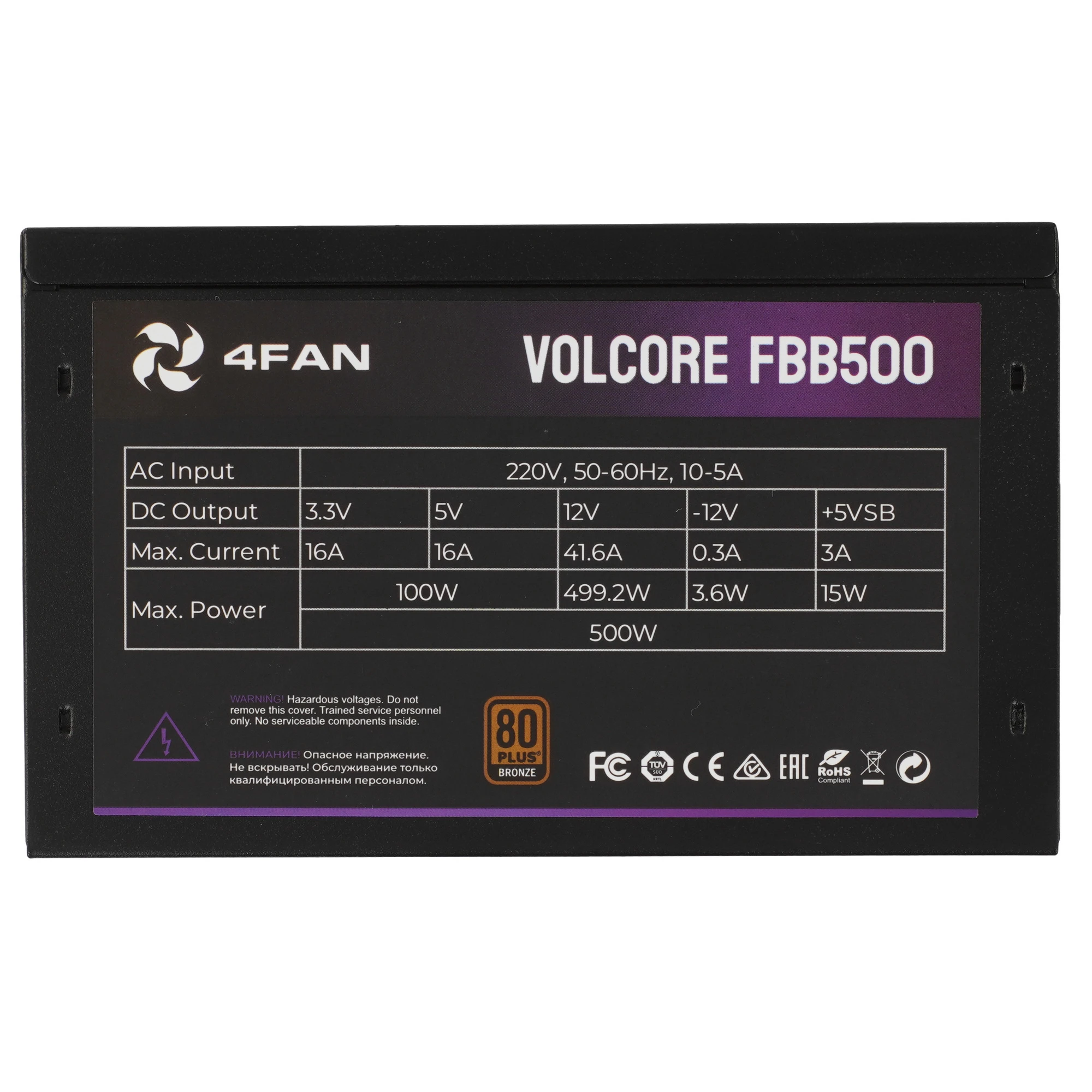 Блок питания 4FAN Volcore FBB500 80+ Bronze 500W Black DC to DC
