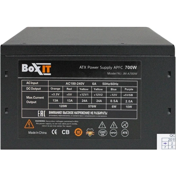 Блок питания BOXIT JM-A700w black 700W (ATX, APFC, 20+4P, 2xPCIe 6+2P, 120mm fan)