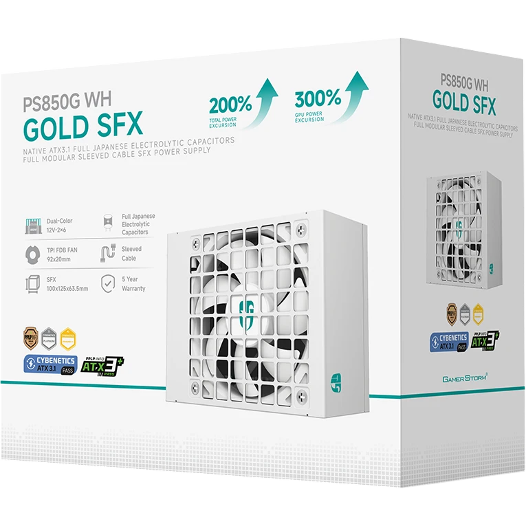 Блок питания Deepcool Gamerstorm PS850G WH (SFX 4.1, ATX 3.1, 850W, Full Cable Management, 92mm fan, Cybenetics Platinum / PPLP Gold)