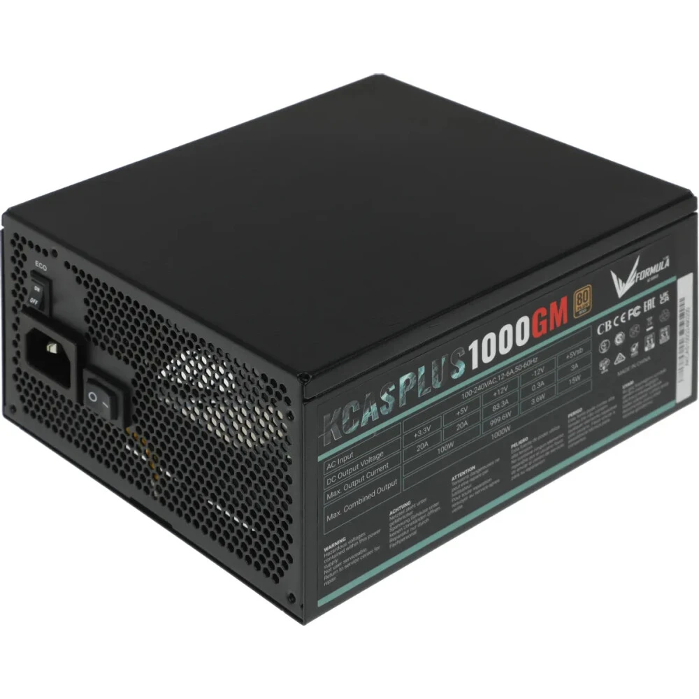 Блок питания Formula V Line KCAS Plus 1000GM, 1000W, ATX3.1/PCIe5.1, APFC, 80+ Gold, 14cm Fan, Full Modular