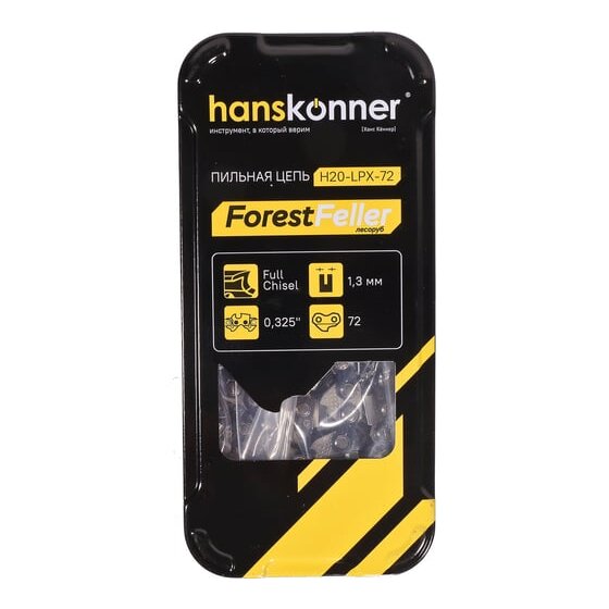 Цепь Hanskonner H20-LPX-72 325"-1,3мм -72зв, квадратный зуб, bumper