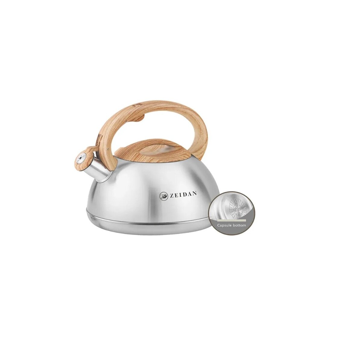 Чайник со свистком ZEIDAN Z-4546 объемом 3,0 литра изготовлен из прочной нержавеющей стали, что обеспечивает долговечность и устойчивость к коррозии. Оснащен индукционным капсулированным дном, которое быстро и равномерно нагревается на любой плите, включая индукционные. Курковый механизм позволяет легко открыть крышку одной рукой, делая процесс закипания воды максимально удобным. Фиксированная ручка с мягким покрытием soft-touch «под дерево» обеспечивает надежный захват и комфорт при использовании, предотвращая риск ожогов и скольжения. Стильный дизайн и практичные функции делают этот чайник отличным помощником на любой кухне. Объем 3 литра идеально подходит для приготовления большого количества горячей воды для семьи или гостей. Высокое качество материалов и современные технологии производства гарантируют долговечность и безопасность эксплуатации.