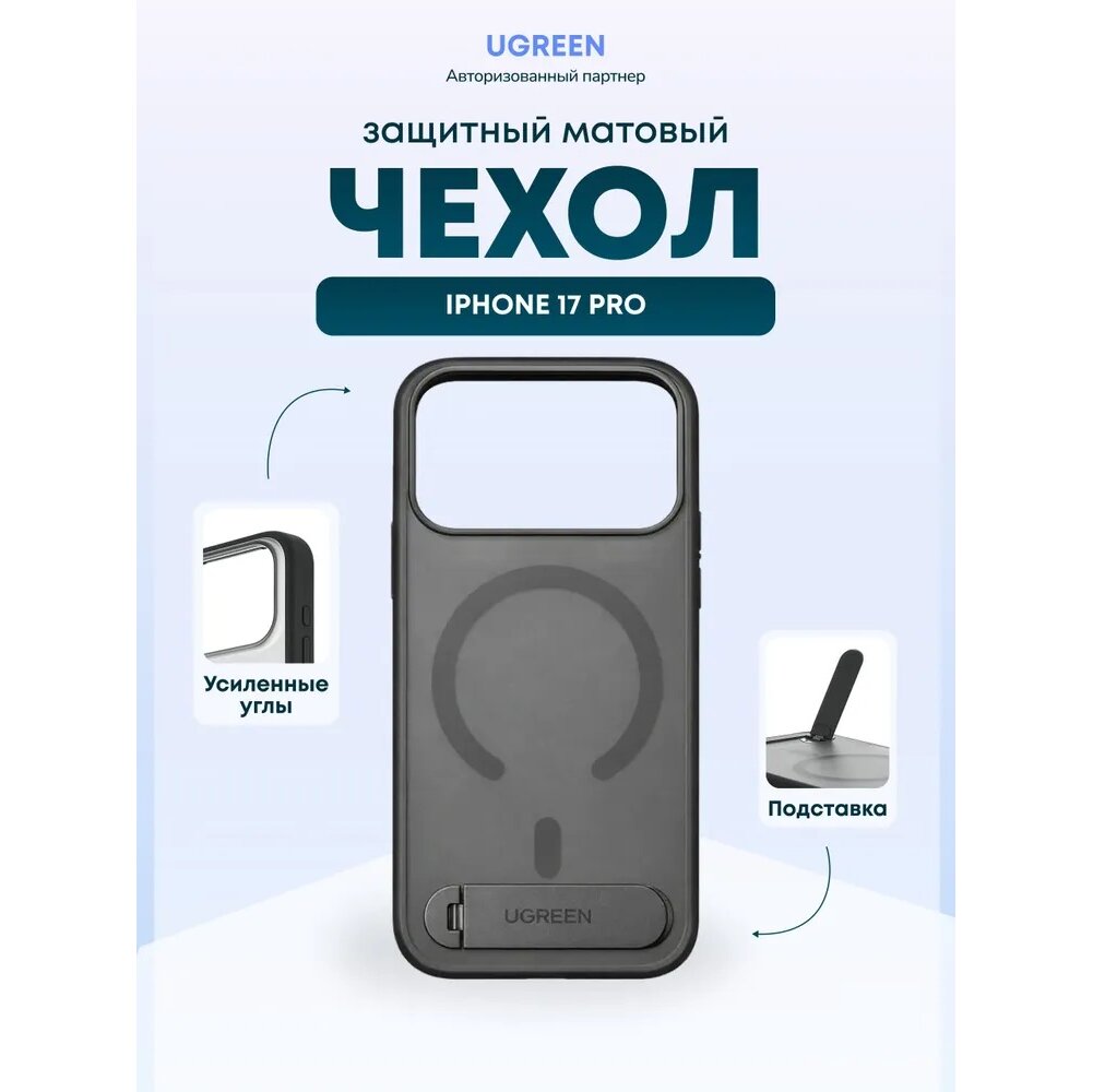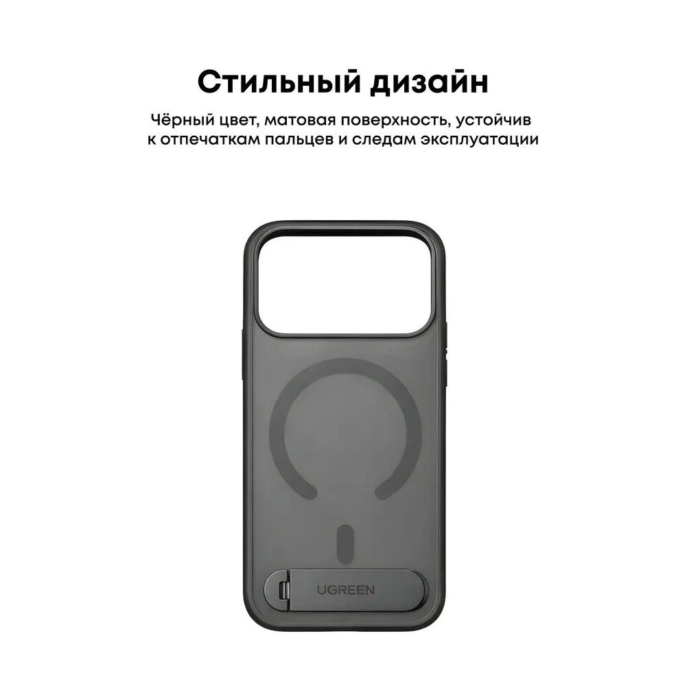 Чехол UGREEN CA316 (95198) Magnetic Protective Case with Stand for iPhone 17 Pro 6,3" Black/Transparent