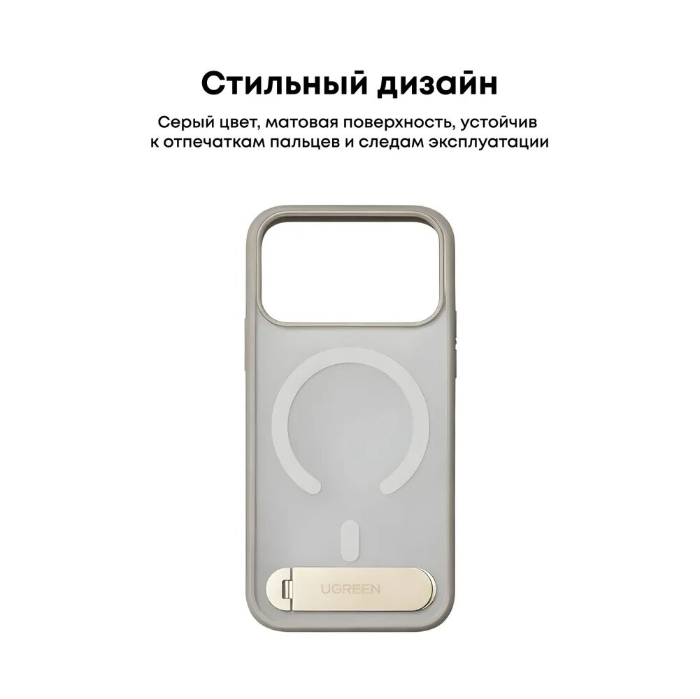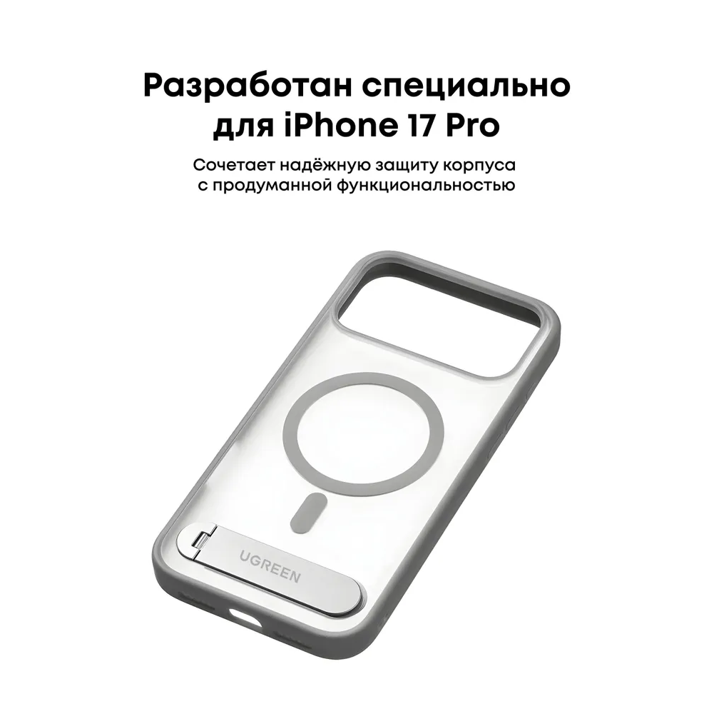 Чехол UGREEN CA317 (95298) Magnetic Protective Case with Stand iPhone 17 Pro Max 6,9'' Gray/Transparent