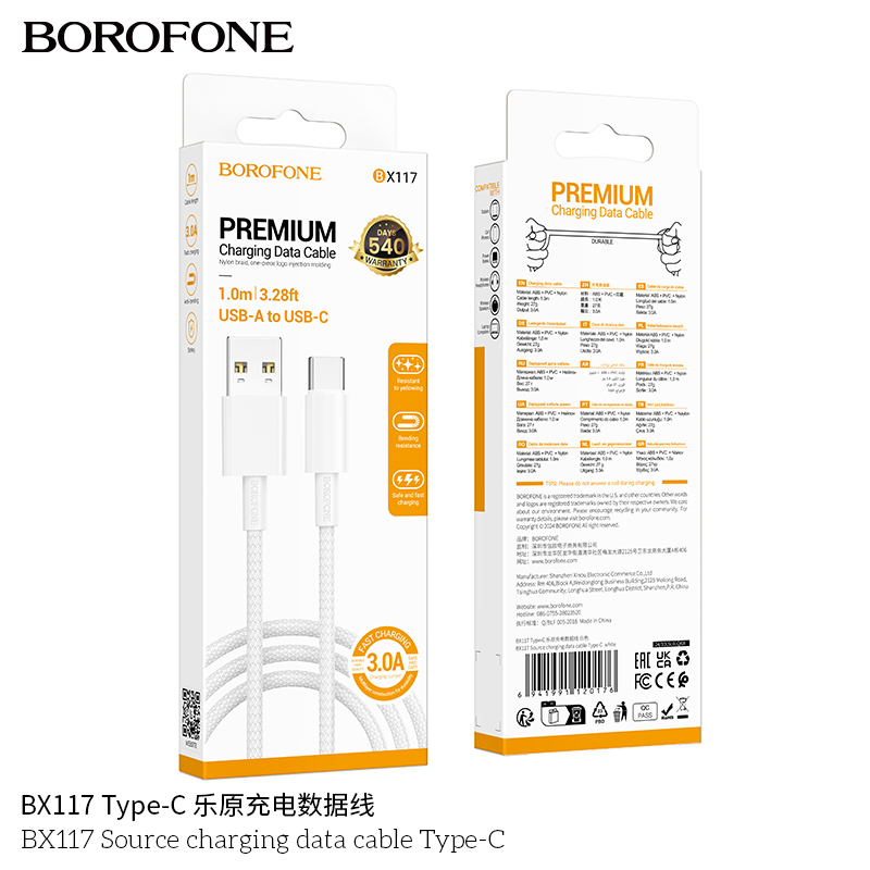 Дата-кабель BOROFONE BX117 Source Type-C белый