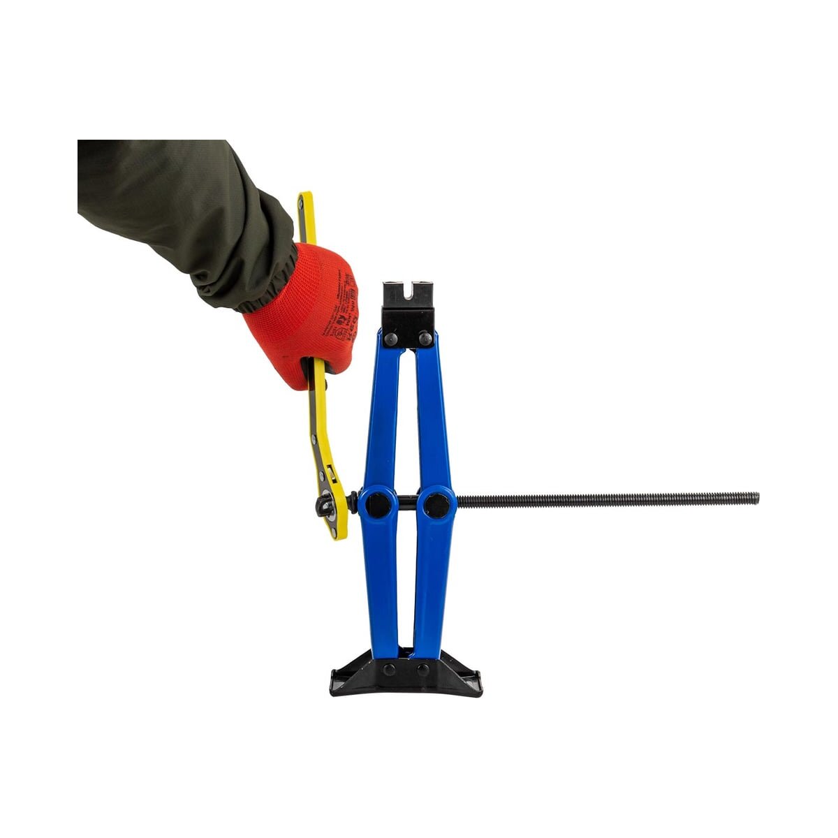 Высота подъема - 400 мм. Высота подхвата - 115 мм. В комплекте прочная резиновая накладка, предотвращающая деформацию порога авто и ручка-трещотка. Поставляется в прочном водоотталкивающем чехле.