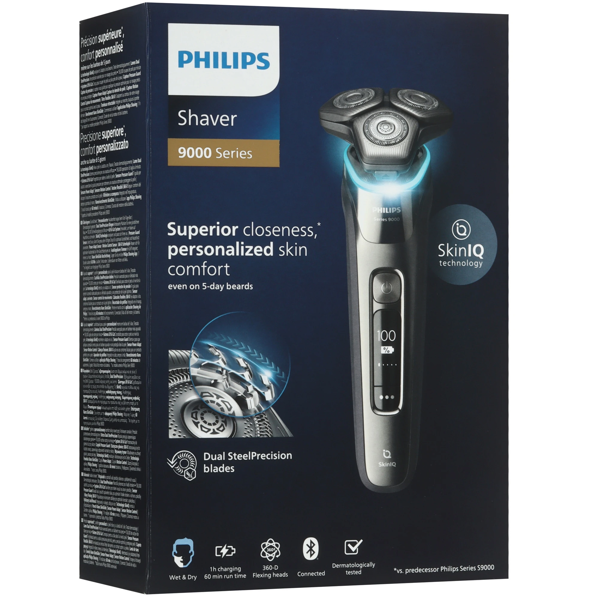 360-D гибкие головки, Power Adapt Sensor, двойные лезвия SteelPrecision, технология SkinIQ