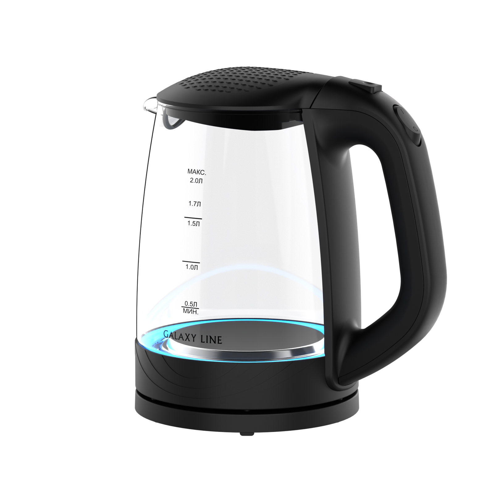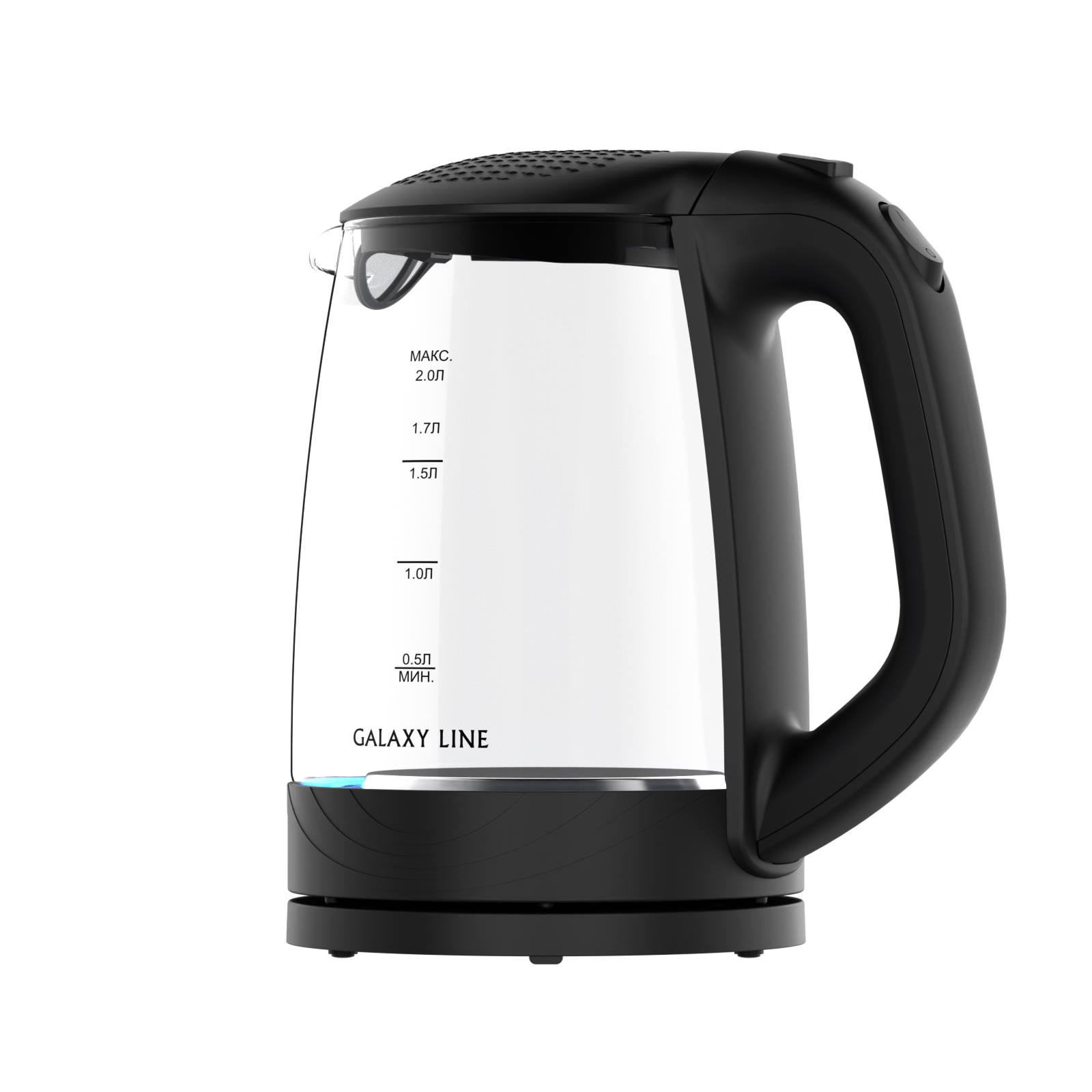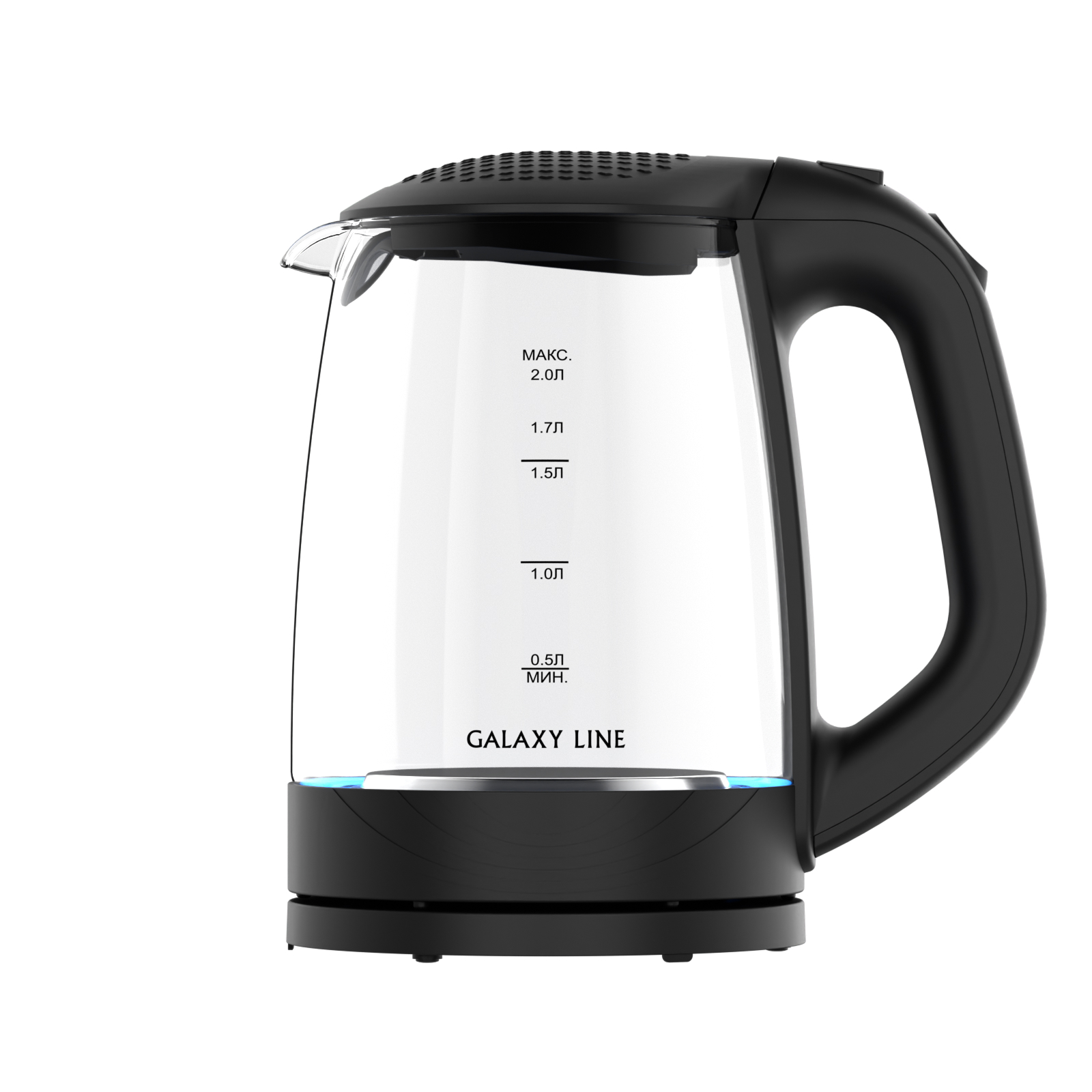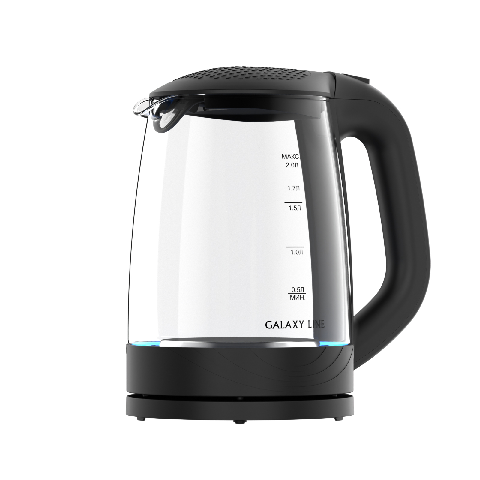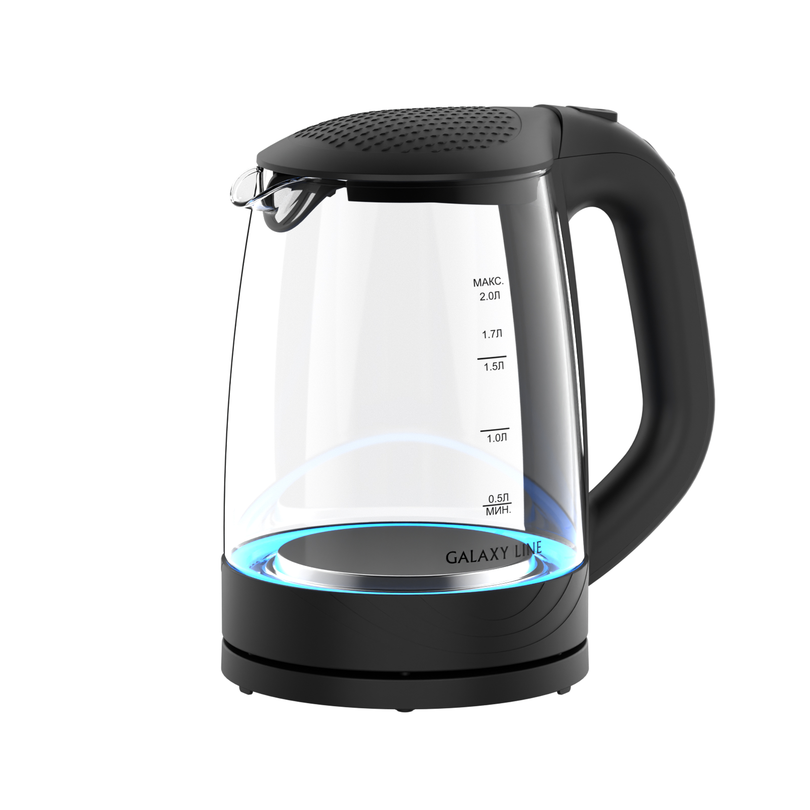 Galaxy Line GL0566 – эффектный стеклянный чайник с прозрачным термостойким корпусом, который сохраняет чистый вкус воды. Шкала уровня воды и мягкая внутренняя подсветка позволяют контролировать количество жидкости и создают уютную атмосферу на кухне.