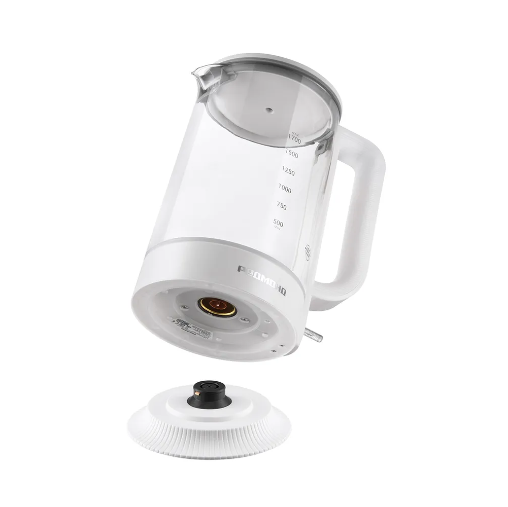 Колба чайника изготовлена из термостойкого стекла. Материал не выделяет вредных примесей, поэтому пользоваться устройством безопасно. Стекло не влияет на вкус воды — напитки получатся идеальными, без запаха пластика.