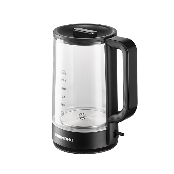 Колба чайника изготовлена из термостойкого стекла. Материал не выделяет вредных примесей, поэтому пользоваться устройством безопасно. Стекло не влияет на вкус воды — напитки получатся идеальными, без запаха пластика