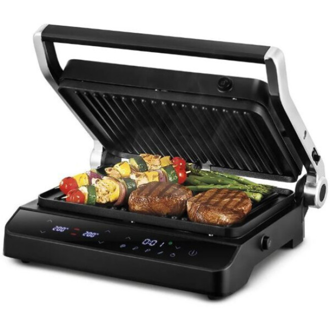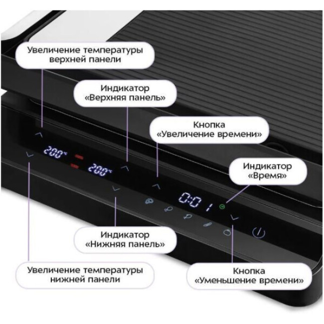Конструктивные особенности тепловых приборов: Антипригарное покрытие, Вертикальное хранение, Поддон для сбора жира, Разборная конструкция, Раскрытие на 180°, Сменные панели для приготовления