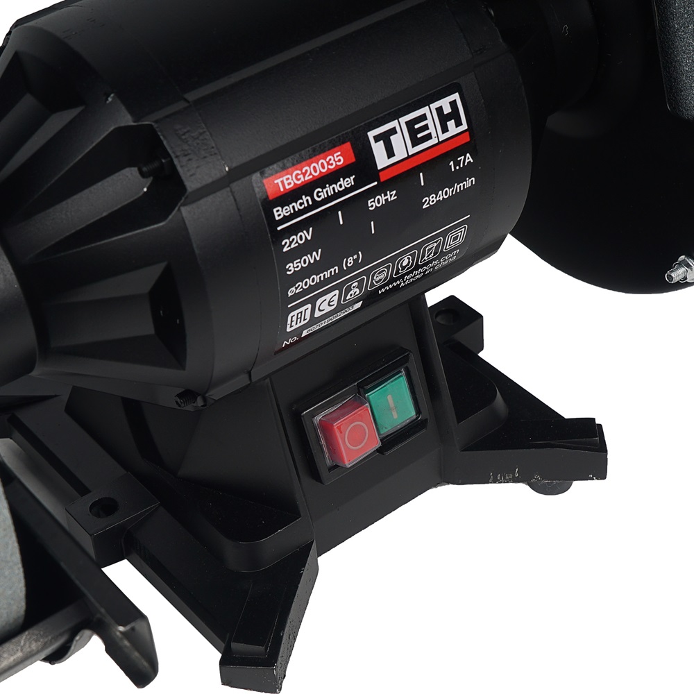Точильный станок TEH TBG20035 предназначен для сухого шлифования металлических заготовок и затачивания режущего инструмента при помощи вертикально вращающихся заточных дисков. Он оснащен двумя абразивными кругами диаметром 200 мм и толщиной 20 мм.