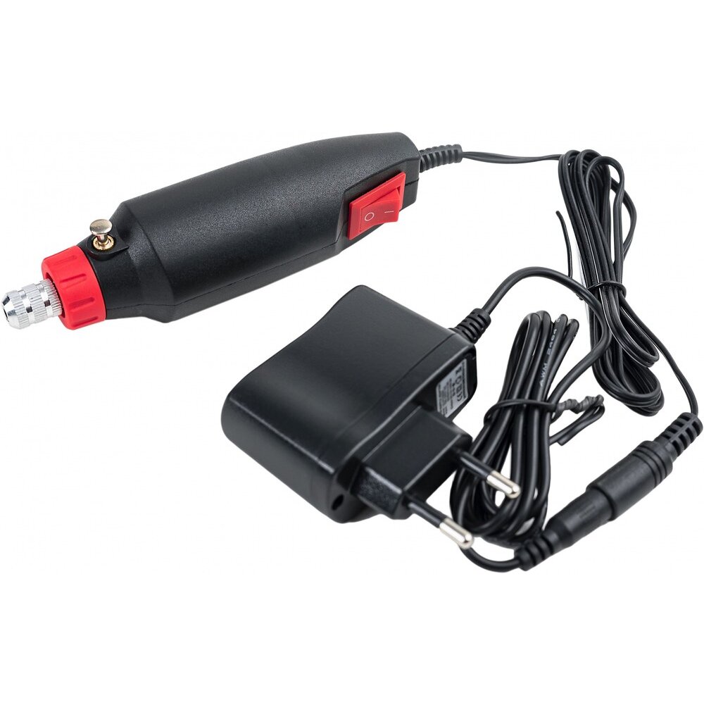 Комплектация -Гравер 150 Вт-Бормашина 12 вольт-Адаптер 12 вольт-Комплект из 350 принадлежностей-Кисть для удаления стружки-Цанги-Подсветка на диодах-Телескопический штатив-Гибкий вал-Пластиковый кейс