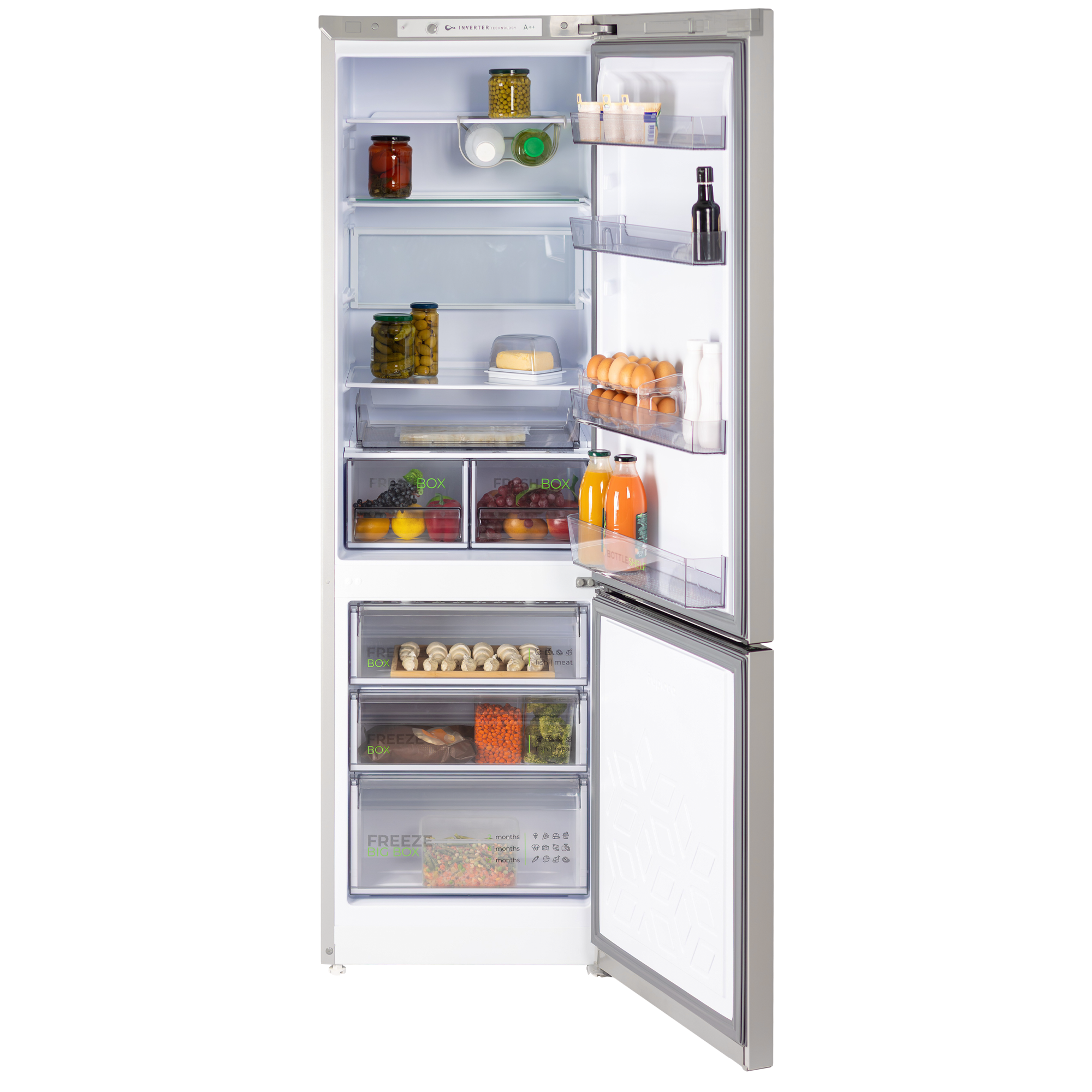 Комплектация Контейнер для 20 яиц, масленка, выдвижной лоток, 2 складные полки, полка для бутылок