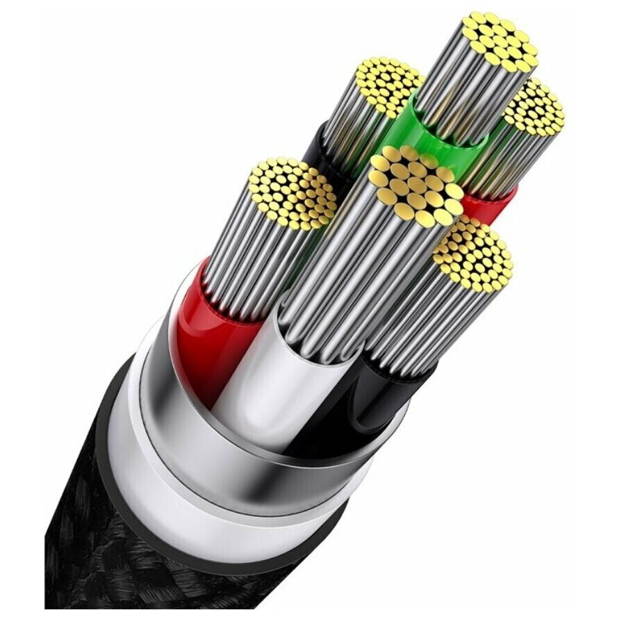 Нейлоновая оплётка укрепляет структуру кабеля и предотвращает его повреждение.