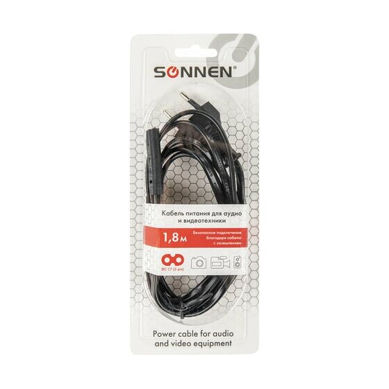 Кабель питания SONNEN 513564 универсальный для аудио и видеотехники C7 (2 pin) 1,8м, черный