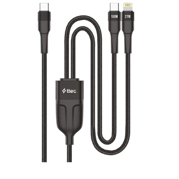 Кабель TTEC 2DK56S AlumiCable Duo USB-C To USB-C&Lightning Fast Charge 100W Cable, длина 150см черный