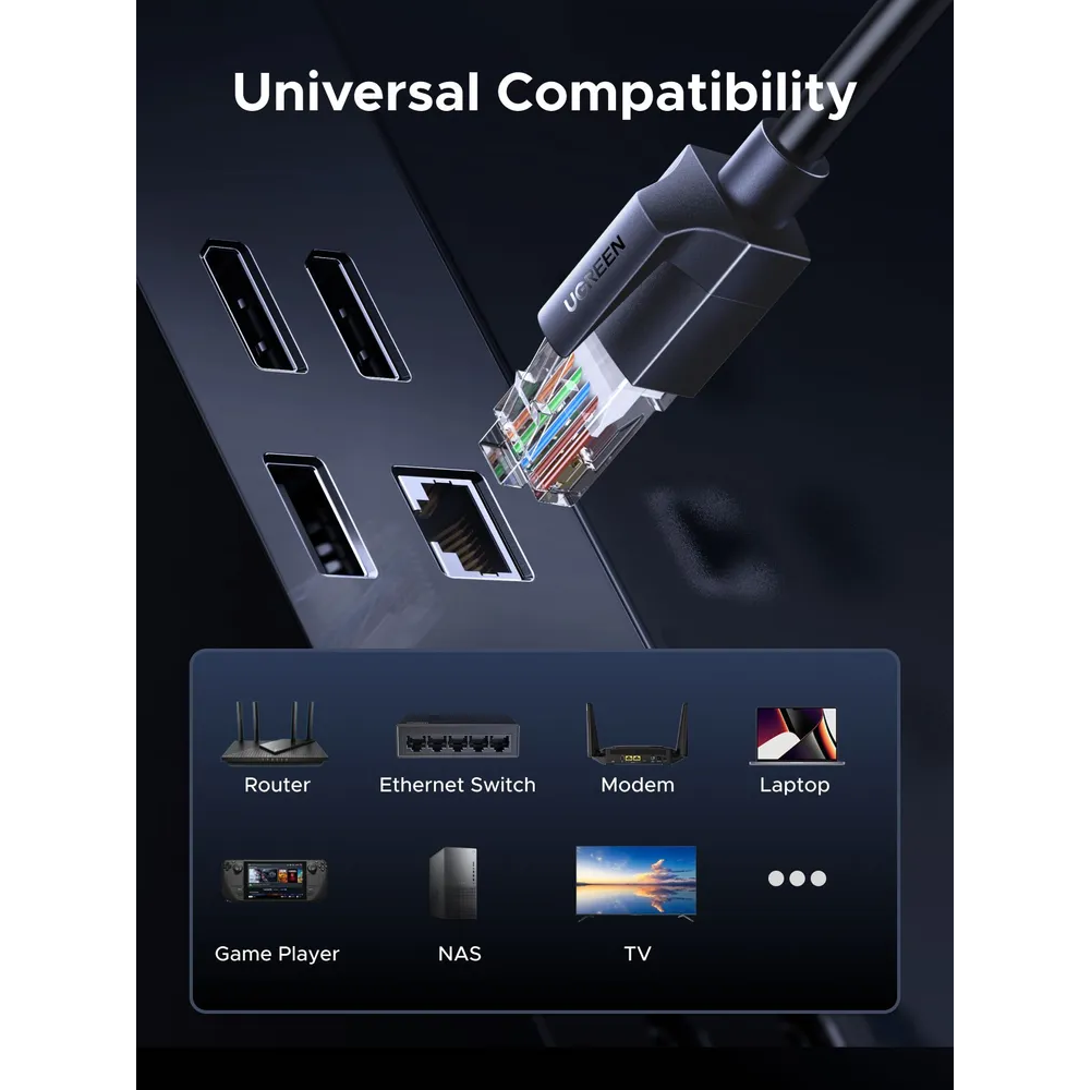 Кабель UGREEN NW315 (55154) Cat6A UTP Ethernet Cable 0.5m Black