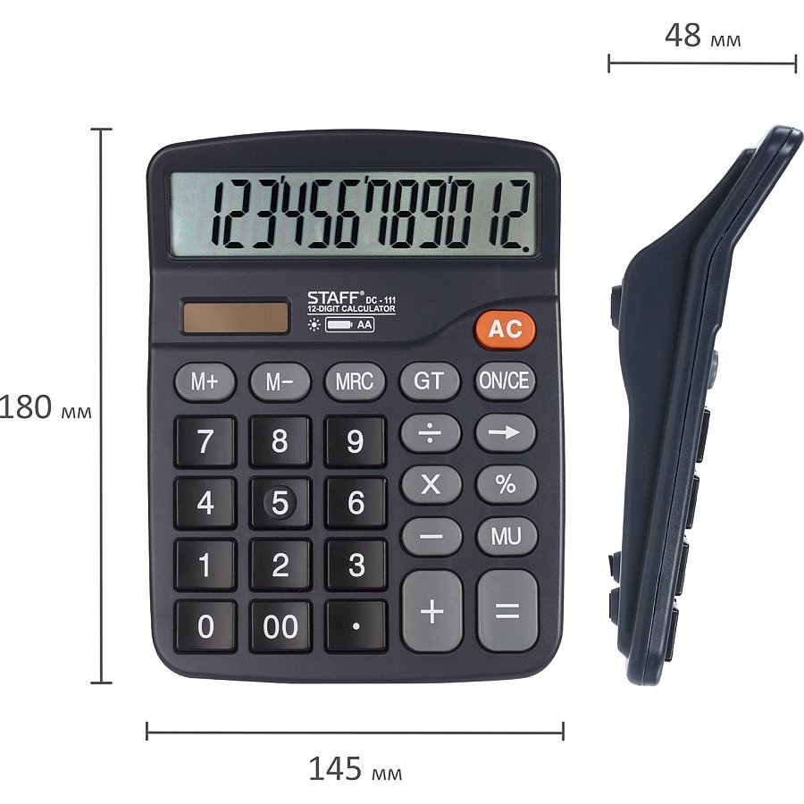 Простой в использовании и точный в расчётах настольный калькулятор STAFF PLUS STF-111 выполняет все необходимые вычисления на работе и дома. Кнопки нажимаются легко и приятно, эргономичный наклон корпуса позволяет работать с максимальным комфортом.