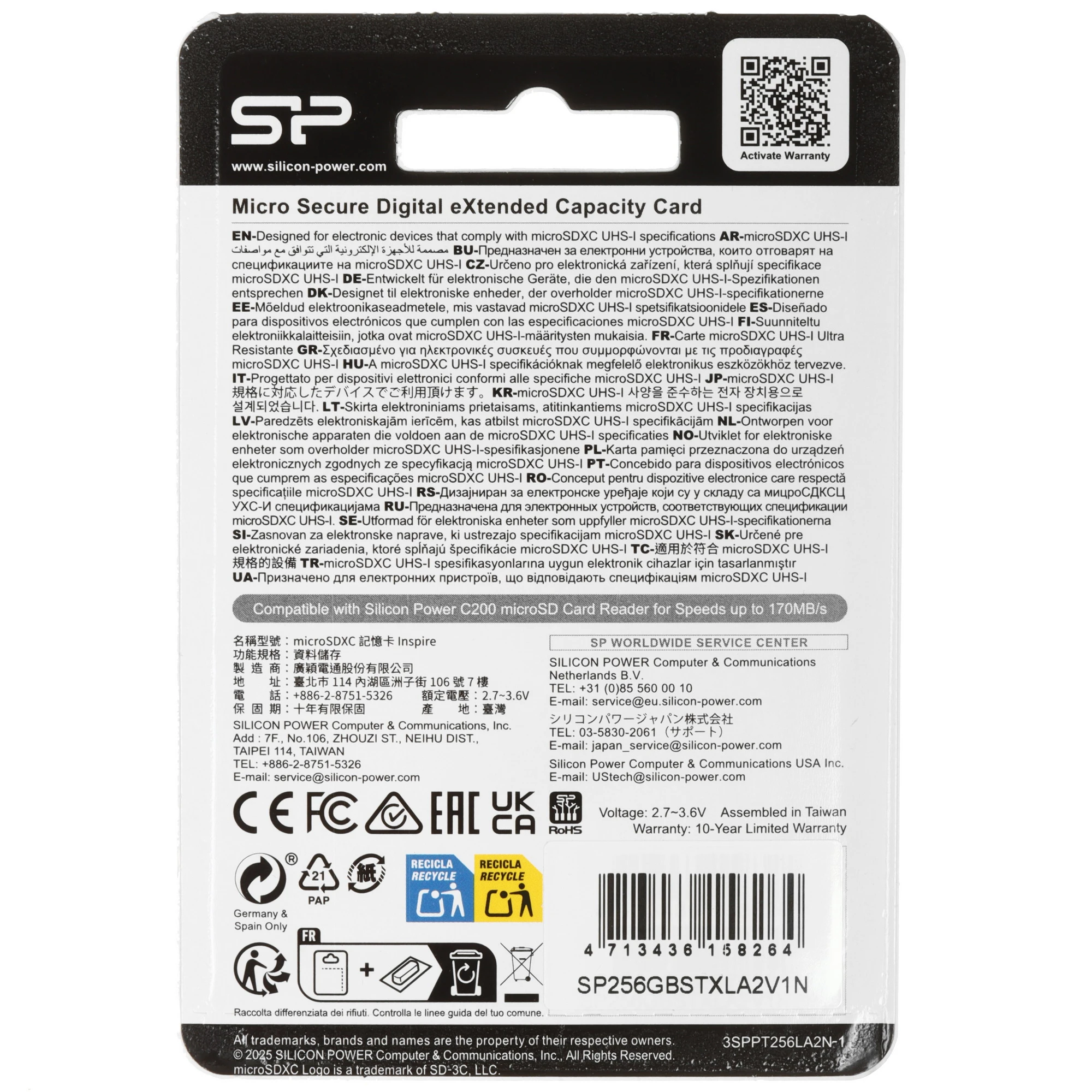 Карта памяти Silicon Power Inspire microSDXC 256 ГБ [SP256GBSTXLA2V1NSP] рассчитана на использование в широком температурном диапазоне – от 0 до 70 °C. Максимальная скорость чтения равна 170 МБ/с, а максимальная скорость записи – 150 МБ/с.