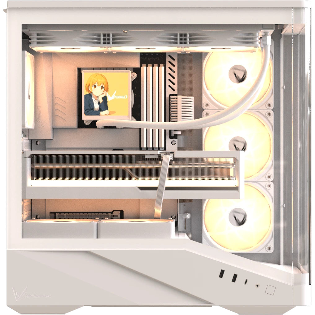 Корпус Formula V Line Crystal U9 PA White, ATX, Type-C*1, USB3.0*2, Curved Glass, Side 3x Performance ARGB, Rear 1x Performance ARGB