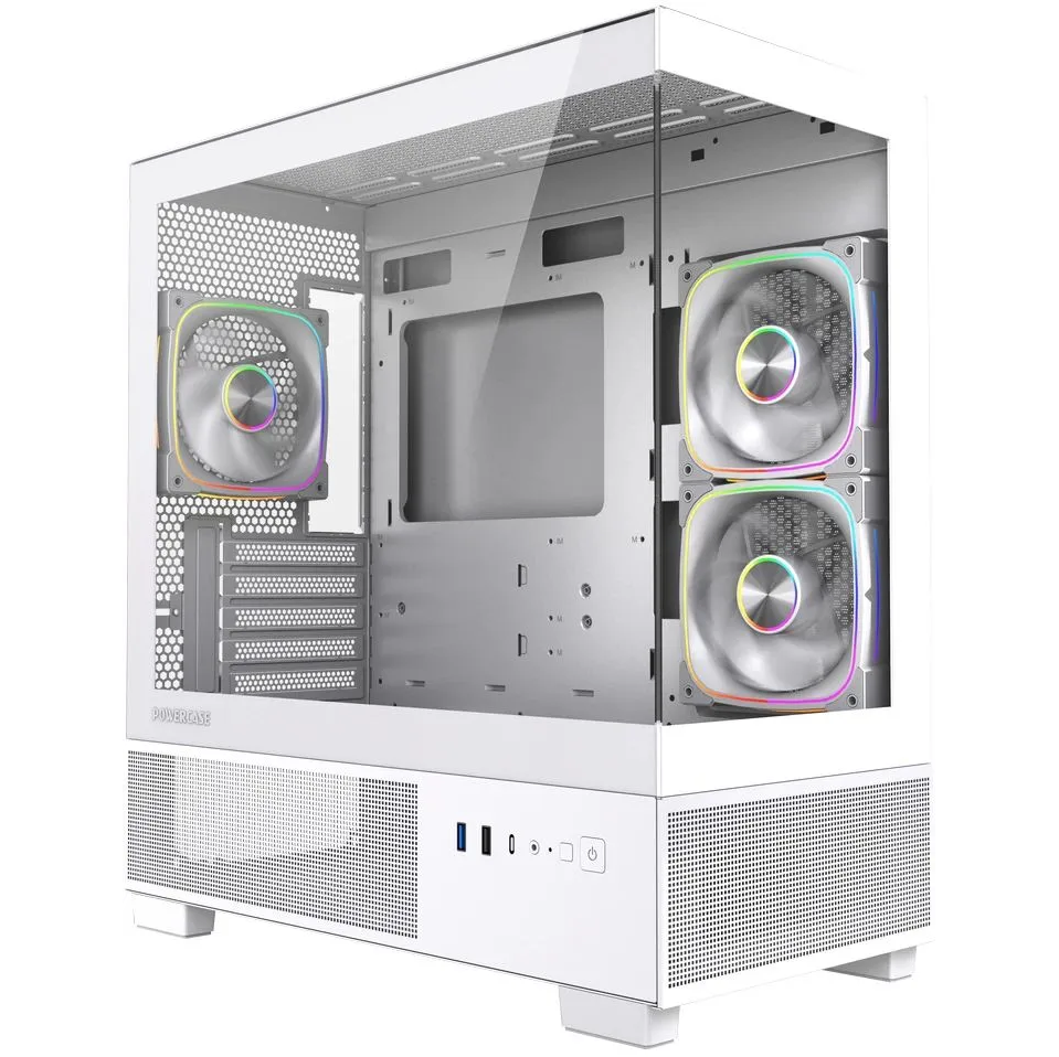Корпус Powercase Vision Micro S3W (CVMMSW-A3), Tempered Glass, Type-C, 3x 120mm ARGB PWM Fan, белый, mATX