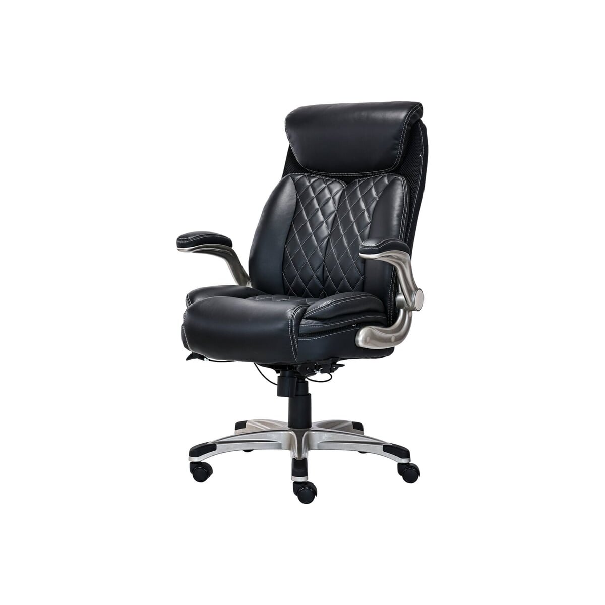 - Откидные подлокотники позволяют легко задвигать кресло под стол, что идеально для организации порядка в малогабаритных офисах или домашних кабинетах