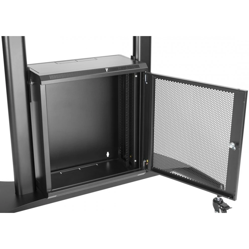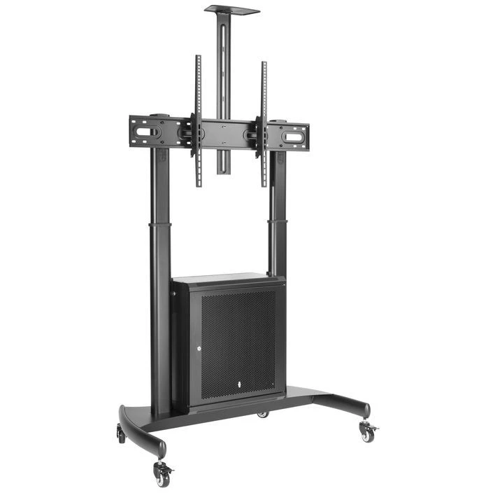 встроенный ящик для оборудования (РЭК), колеса с системой блокировки, регулировка высоты ТВ: 1365-1685 мм