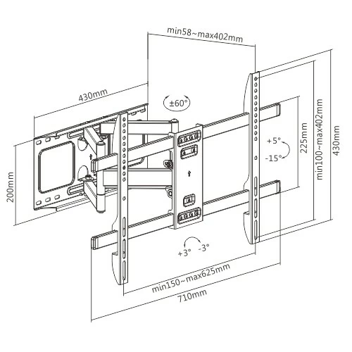 наклон (+5°~-15°), поворот (+60°~-60°)