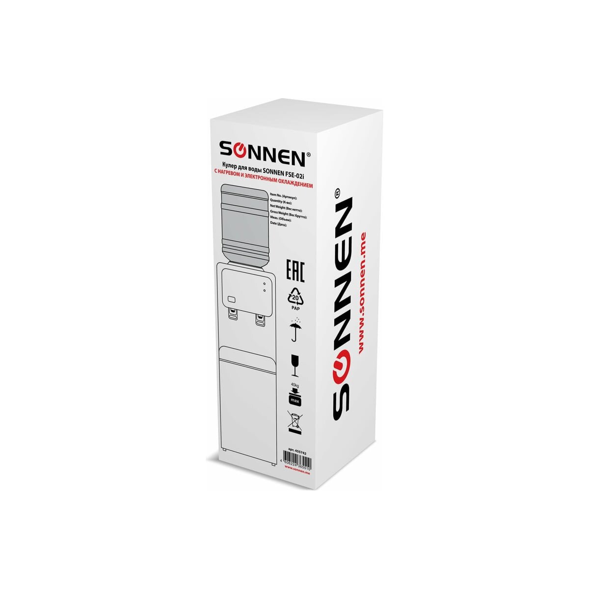 Кулер для воды SONNEN FSE-02i (455742) белый