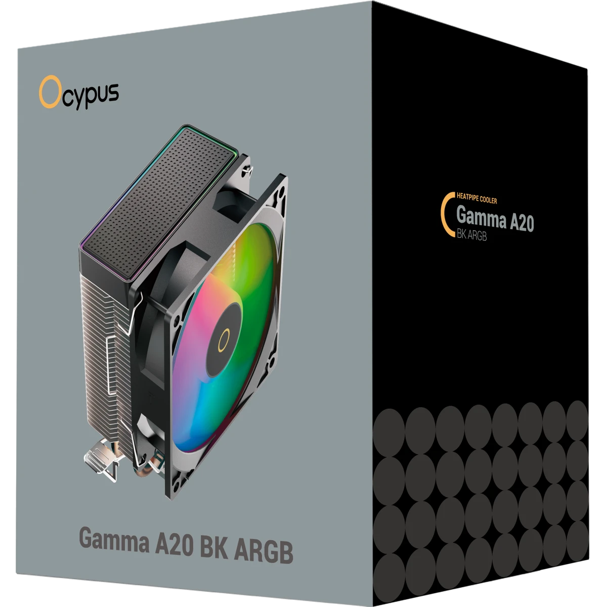 Кулер Ocypus Gamma A20 BK ARGB, 92mm FARGB Fan, Top FARGB Panel, 2 Heat pipes, 3-pin, 1900 RPM, 21DBA, Hydro Bearing, LGA115X/1200/1700