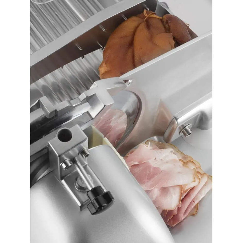 Профессиональный слайсер для нарезки в эксклюзивном итальянском дизайне подойдет не только для дома, но и для ресторанов, баров и кейтеринга.