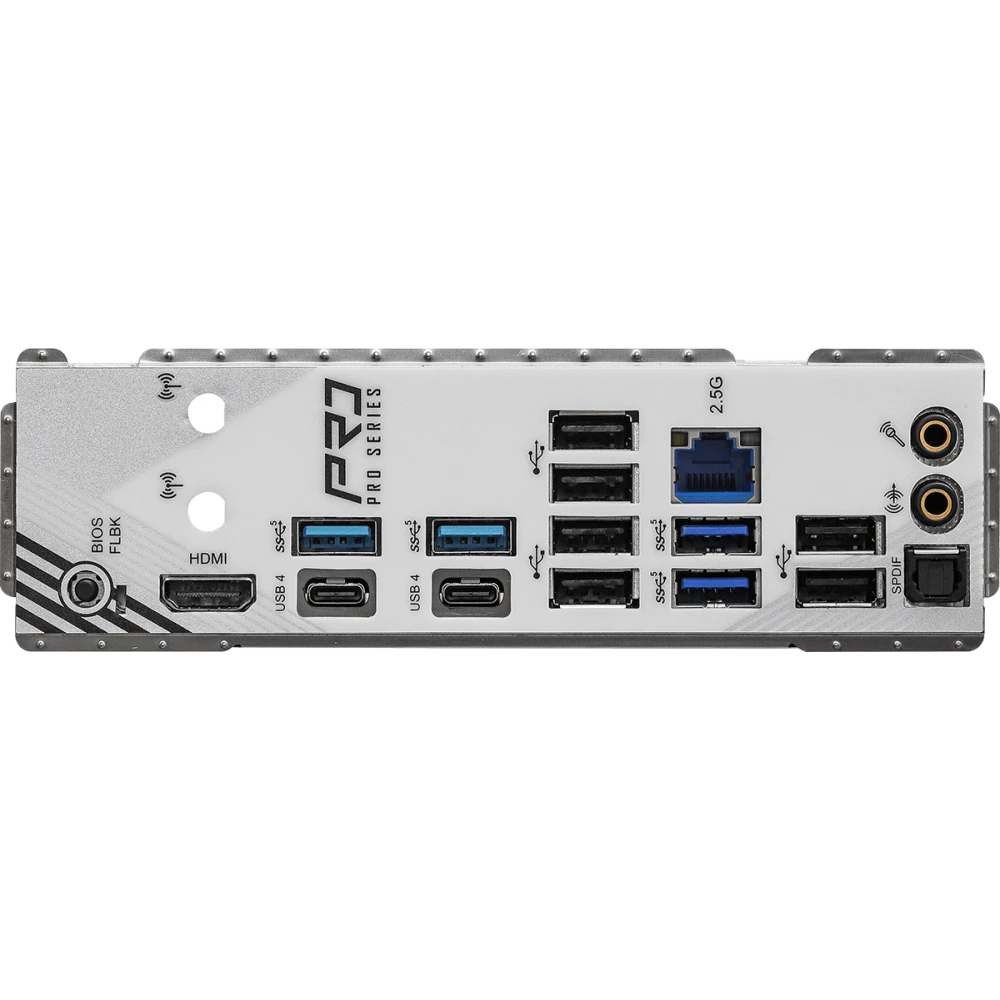 6 x USB 2.0, 4 x USB 3.2 Gen1, 2 x USB 4 Type-C, HDMI, RJ-45, S/PDIF (оптический)