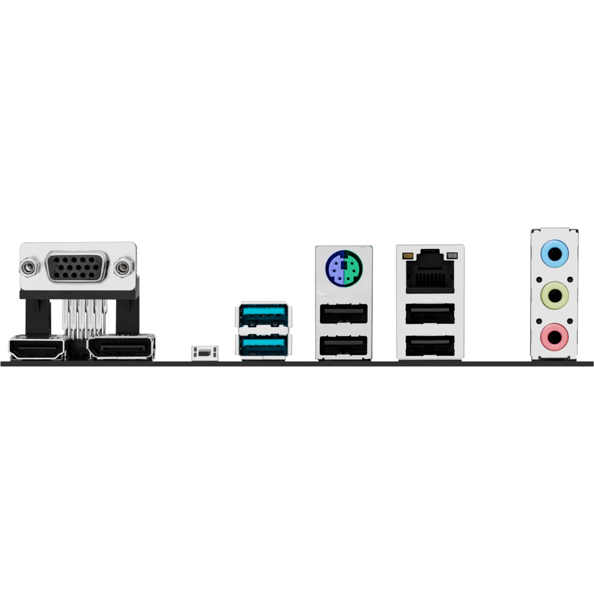 PS/2, 4 x USB 2.0, 2 x USB 3.2 Gen2, VGA, HDMI, DisplayPort, RJ-45