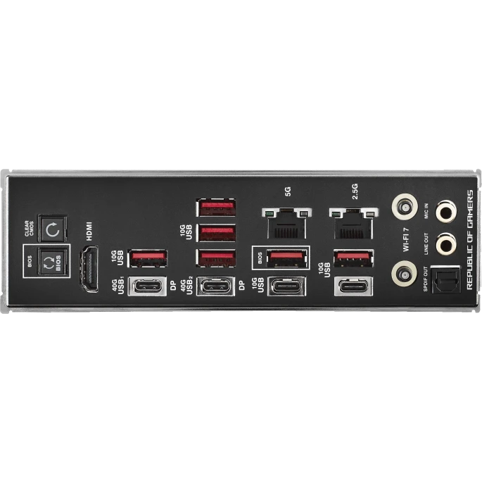 6 x USB 3.2 Gen2, 2 x USB 3.2 Gen2 Type-C, 2 x USB 4 Type-C, HDMI, 2 x RJ-45, S/PDIF (оптический)