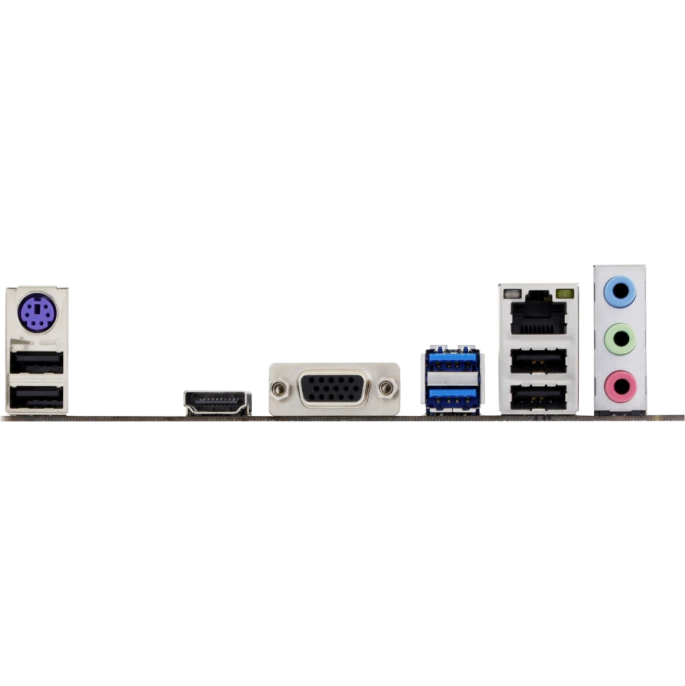 PS/2, 4 x USB 2.0, 2 x USB 3.2 Gen1, VGA, HDMI, RJ-45