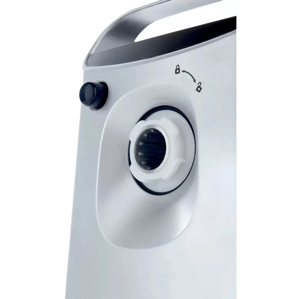 механический фиксатор блока мясорубки, ручка для переноски, хранение насадок в толкателе