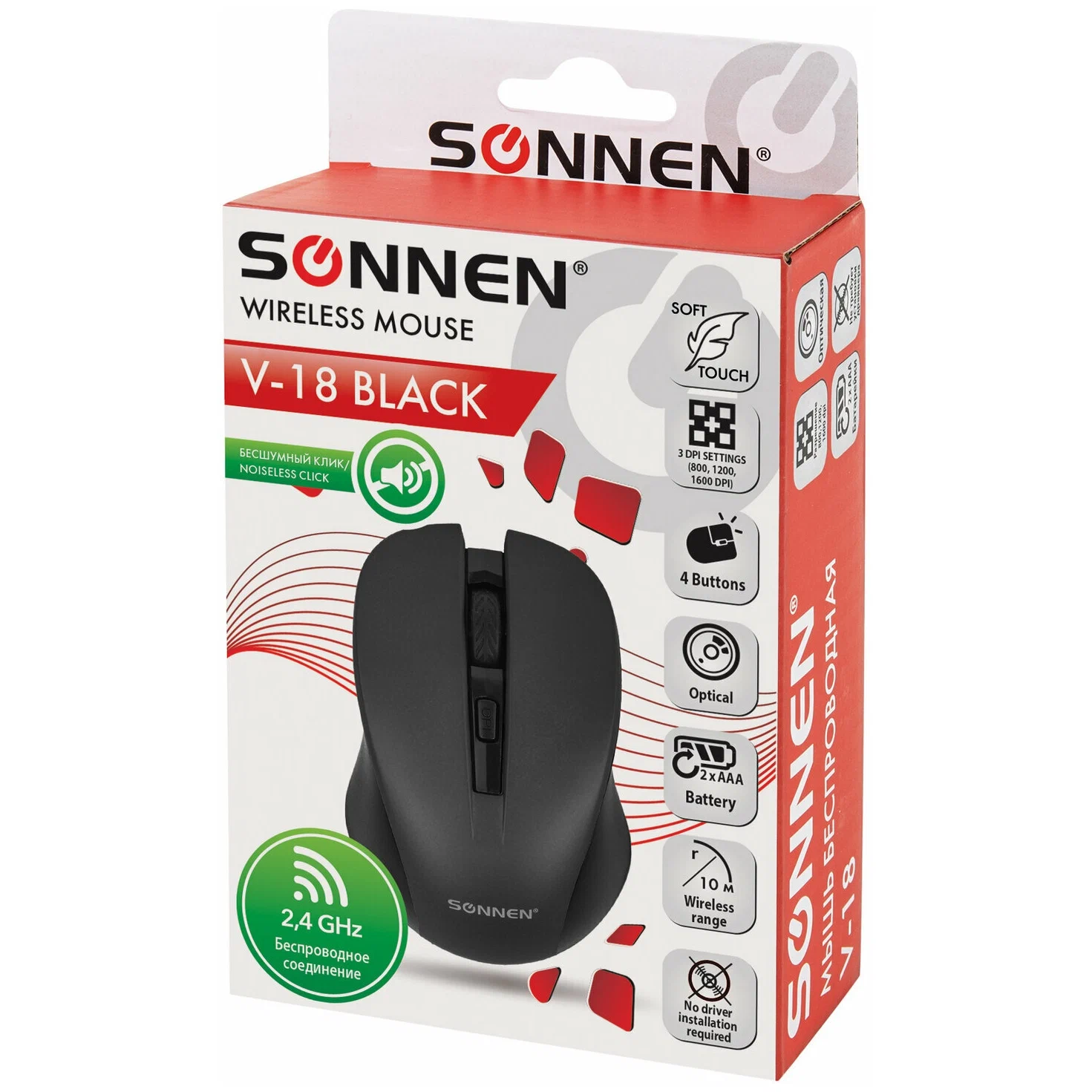 Мышь беспроводная SONNEN V18 (513514) черная