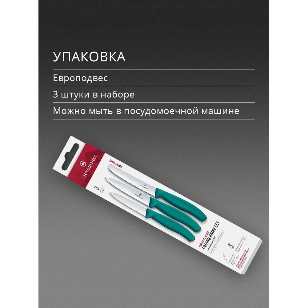 Набор ножей кухонных Victorinox Swiss Classic 6.7114.34C1 для овощей компл. 3предм. зеленый европодвес
