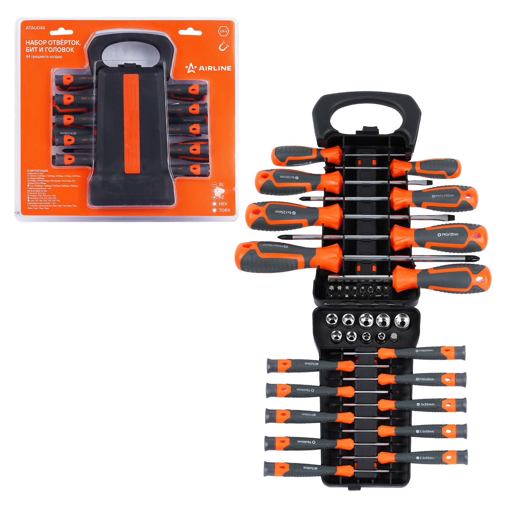 Набор отвёрток, бит и головок Airline ATAU044 44 пр.